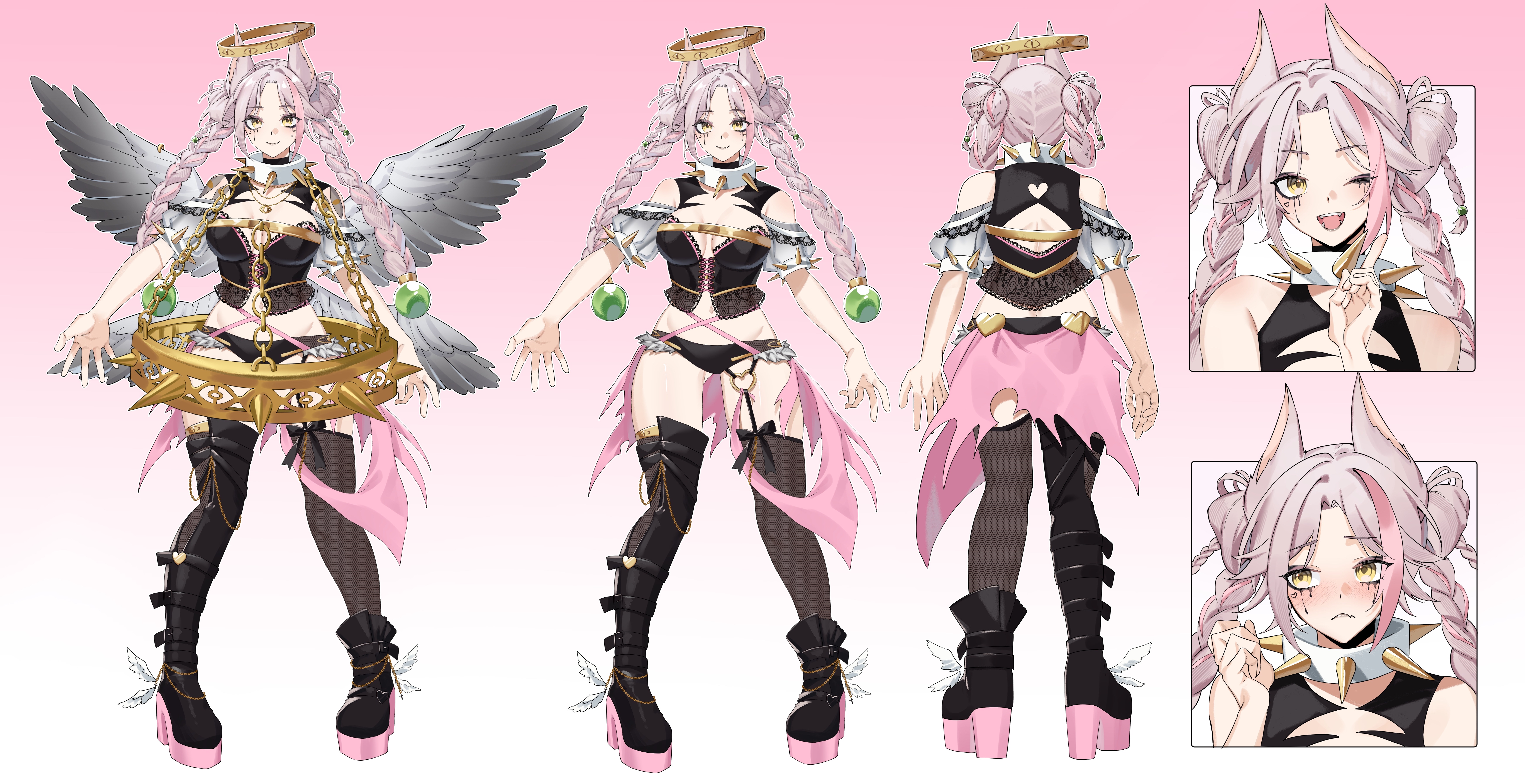 Height: 172cmBust: 106cmEyecolor: GoldenHair Color: White, pastel pink
